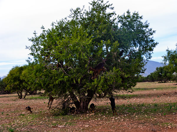 I was just there, and the coop seem to be working. Most argan sold today is produced by a Berber women’s cooperative that shares the profits among the local women earning money which provides health and education to them and the whole community. The cooperative has established an ecosystem reforestation project so that the supply of argan oil will not run out and the income that is currently supporting the women will not disappear. The goats are kept out of the trees from May to August thus the trees are looking much healthier than the pictures of trees taken in 2007.