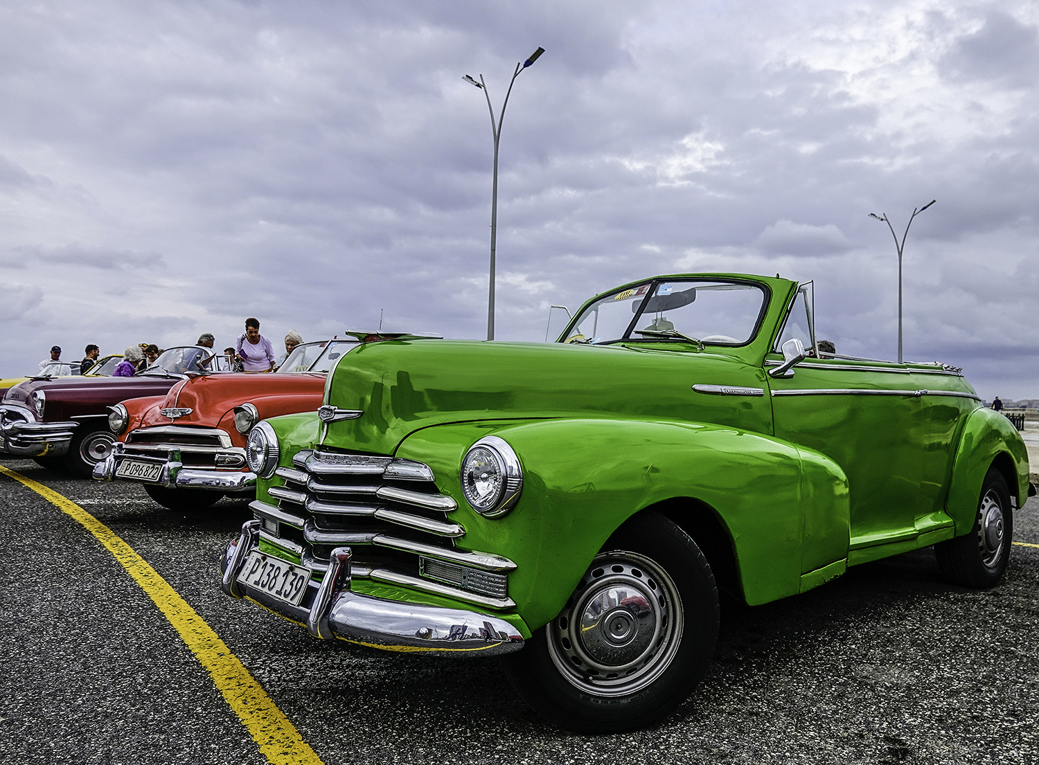 Just a few of the beautifully restored Classic Cars seen in Cuba. These cars are lovingly preserved and maintained. Most seem to have been converted to diesel and many are used as Taxis. I think using the cars as taxis is one way they are able to afford keeping the cars is such good looking condition and so well maintained. The colors of the cars used are not usually indicative of what they were when they were first purchased. It was great fun to take a ride in the cars, bringing back memories. The roll up windows, the radio the steering wheel etc. More pictures of these Classic Cars to follow.