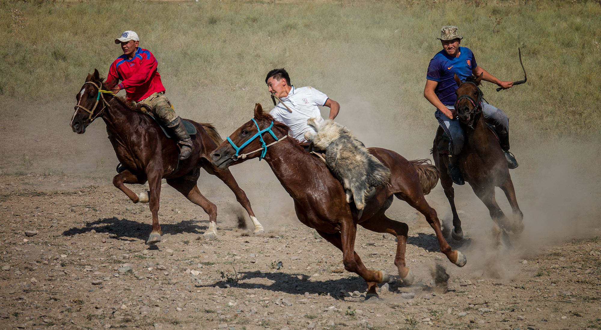 The Kyrgyz people are descended from nomads and are proud of their horsemanship. While we were there we got to experience display of traditional Kyrgyz horse games, including Oodarysh, a kind of wresting match on horseback and Ulak Tartysh a sort of polo played with a goat carcass. Photos of each are featured. Horsing around in Kyrgyzstan Riding towards the Goal