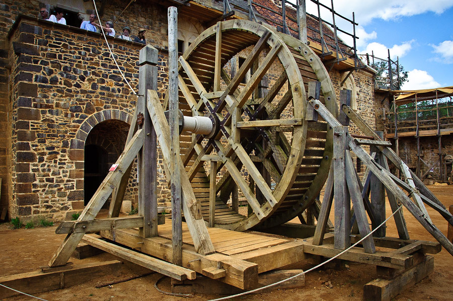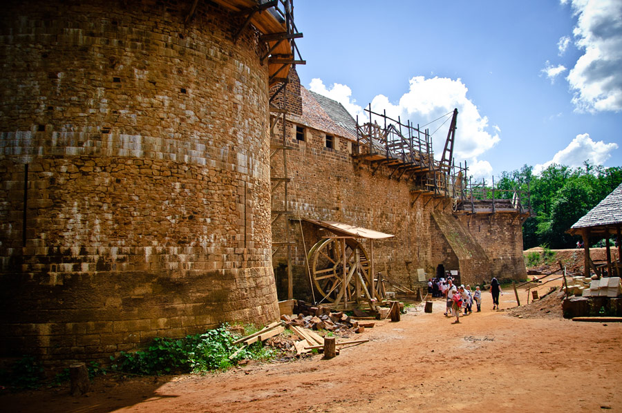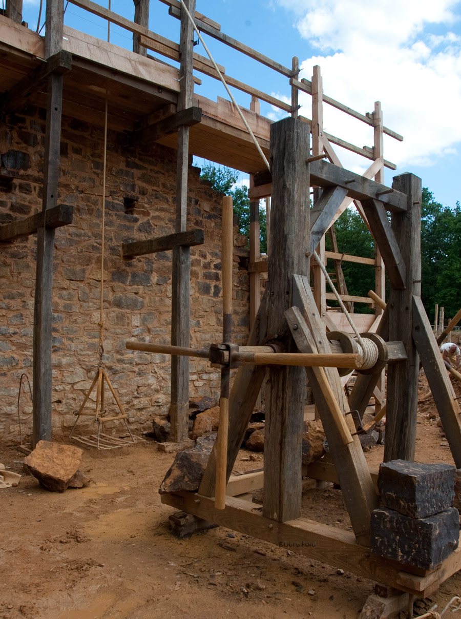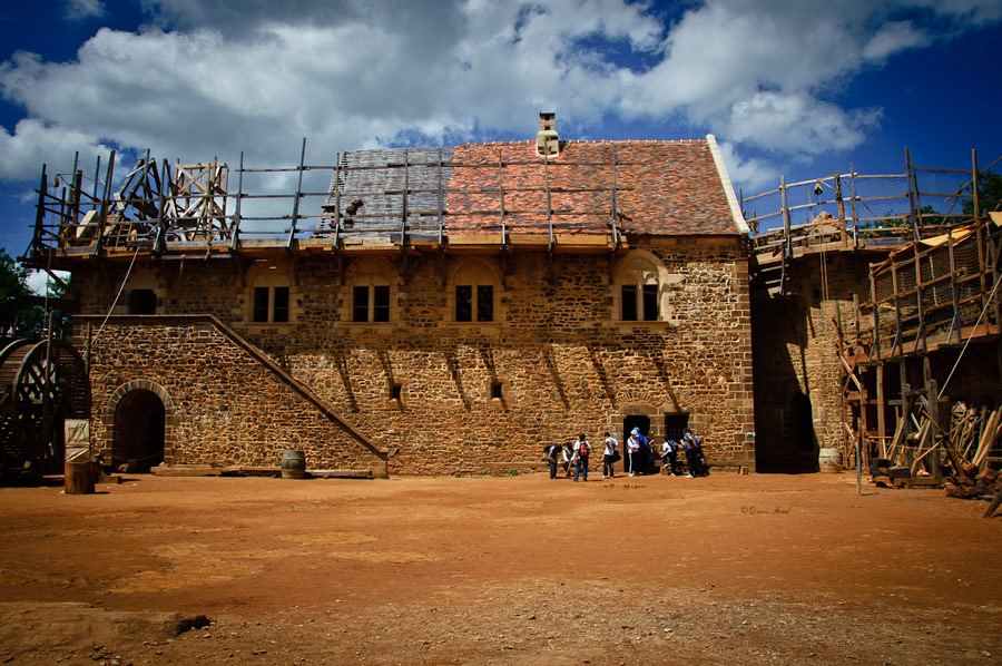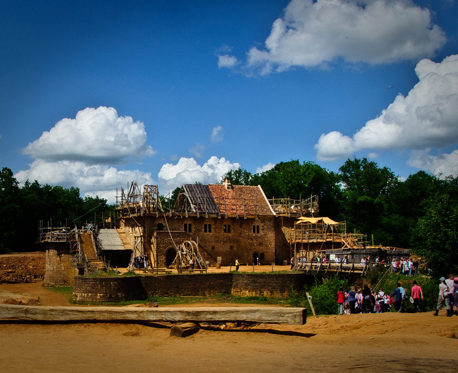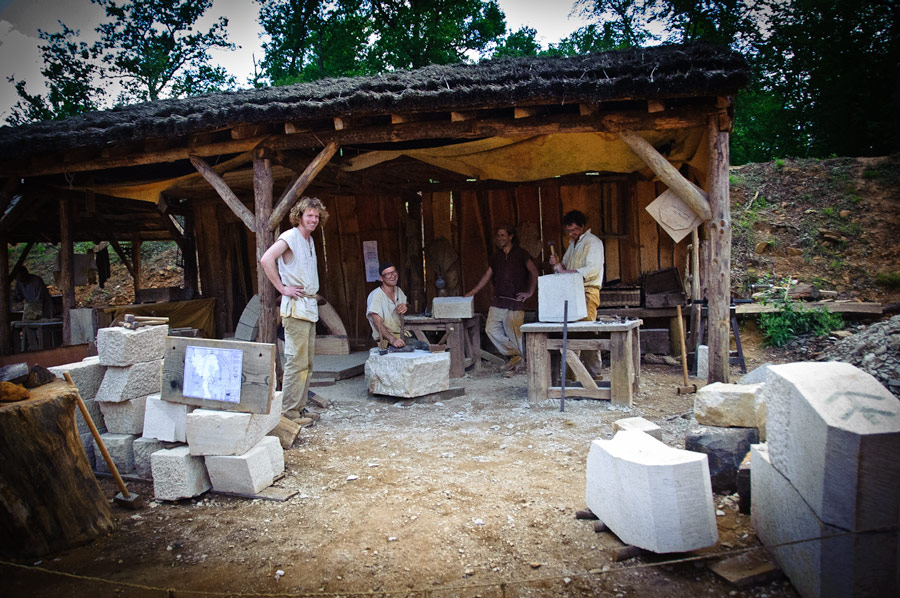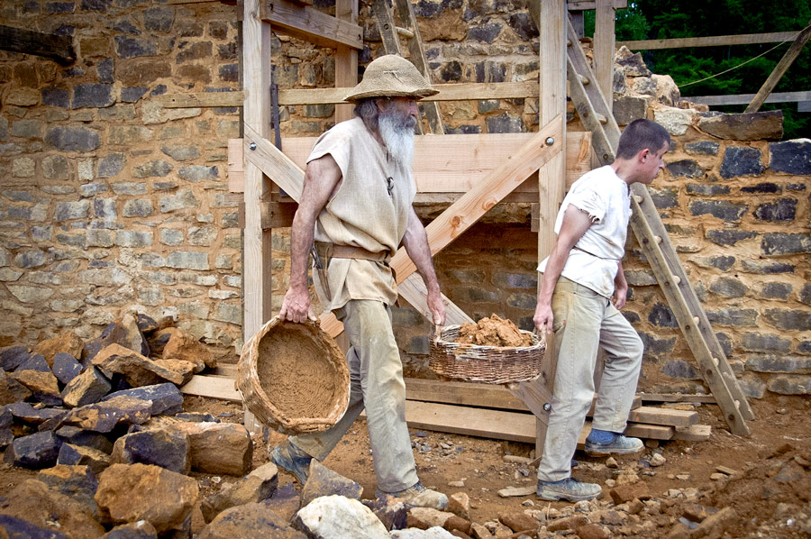 In order to fully investigate the technology required in the past, the project is using only period construction techniques, tools, and costumes. Materials, including wood and stone, are all obtained locally. Jacques Moulin is the chief architect for the project. He designed the castle according to the architectural model developed during the 12th and 13th centuries by Philip II of France.