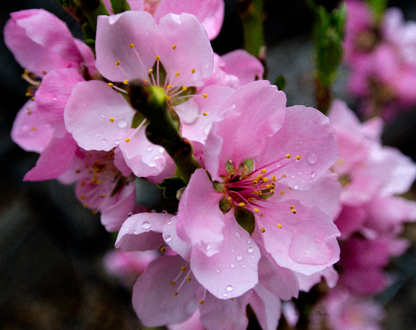 The apricot trees are blooming as well as the Nectarine, Cherries, Plums and some Apple trees. With a snow storm at this late date the blossoms are often frozen, which means another year of no fruit. That is life in the high desert at 7000 ft, in New Mexico! BUT it is a wonderful place to live, and a very popular place to visit as we are only 35 miles from Santa Fe, once voted the most desirable place to visit in the world by Conde Nast. Happy Spring to you, and very soon Happy Easter!