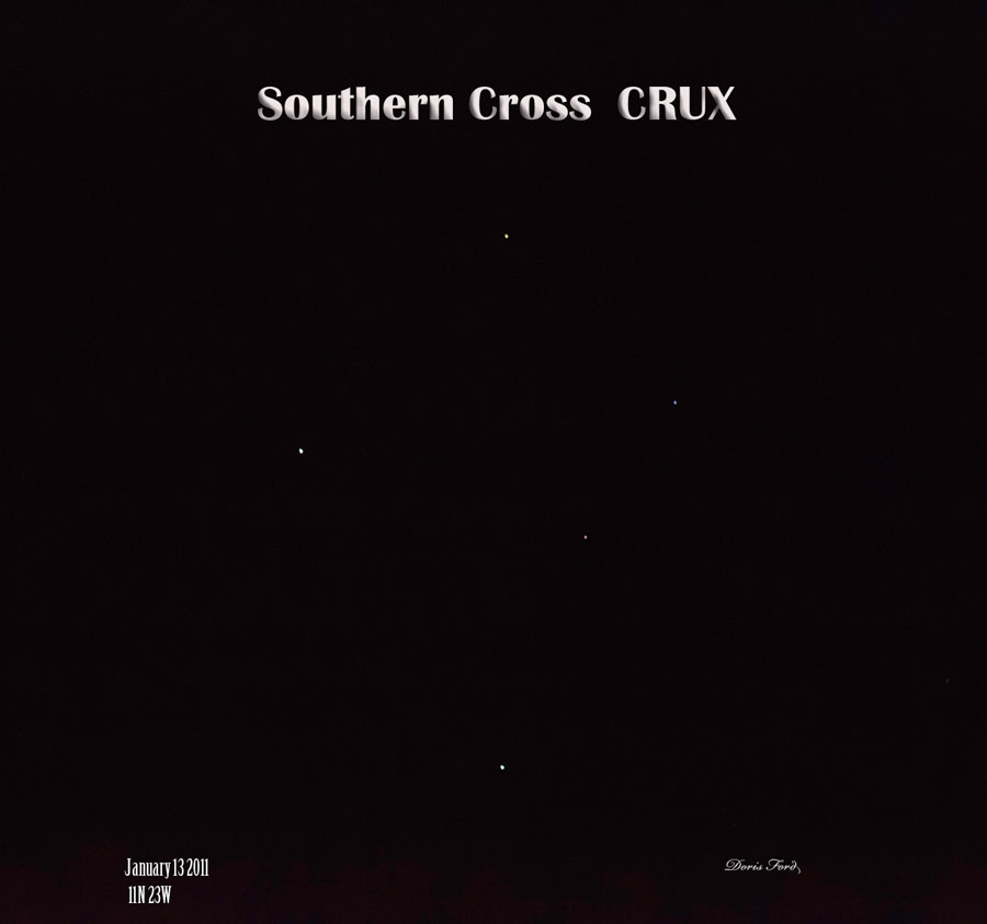On a recent trip across the equator I saw the Large Magellanic Cloud, but the most impressive celestial sight to me was my first sighting of the Southern Cross. Maybe it was impressive because I was also able to get pictures of it! Laying on a deck chair on the Sky Deck of a Cruise ship at 4 or 5 am is amazingly wonderful! You say you aren’t a morning person, well neither am I but I still marveled at the beauty of the sky at those hours, and got up without the aid of an alarm clock! I do have a great lady to Thank for opening my eyes to the southern sky; Famous HAL lecturer, Star Lady Donna. Check her out www.stargazing.ca