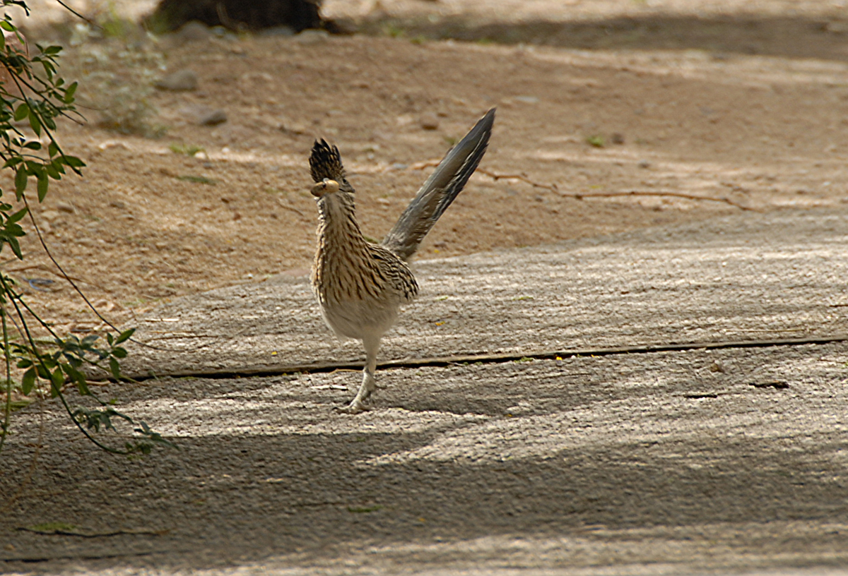 The name roadrunner comes from the bird’s habit of racing down roads in front of moving vehicles and then darting to safety in the brush.